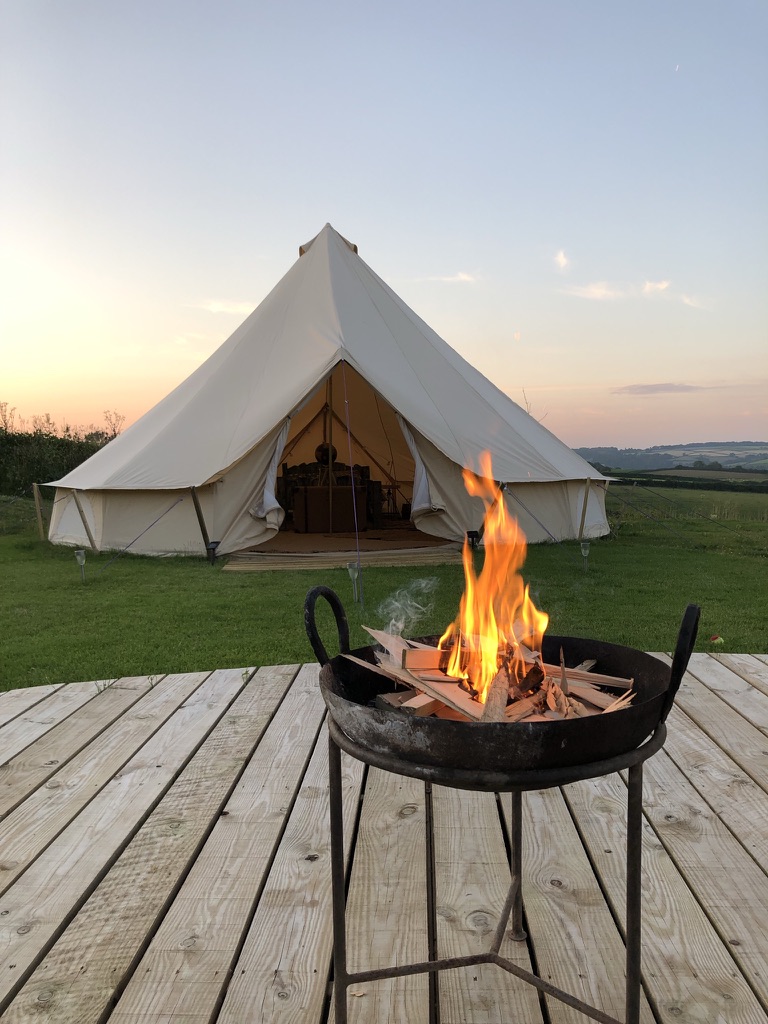 Well Park Glamping and Camping on 6 acres of re-wilded farmland, near the Devon coastline. Enjoy luxurious bell tents or DIY camping with excellent facilities.